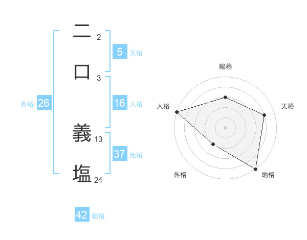 二口 義塩さんを姓名の画数から五運を鑑定