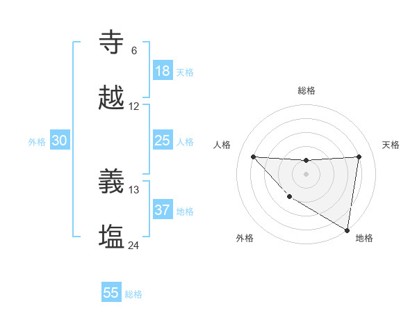 寺越 義塩さんを姓名の画数から五運を鑑定