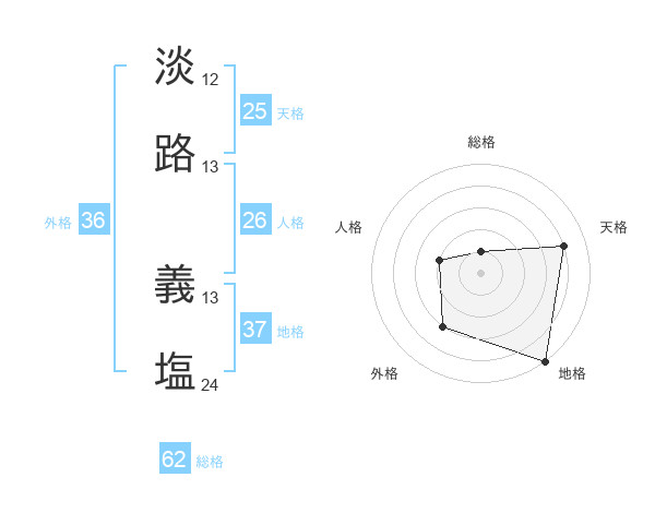 淡路 義塩さんを姓名の画数から五運を鑑定