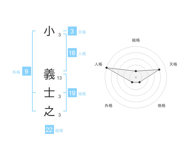 小 義士之さんの総格は22画の1点!
