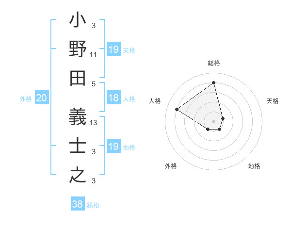 小野田 義士之さんを姓名の画数から五運を鑑定