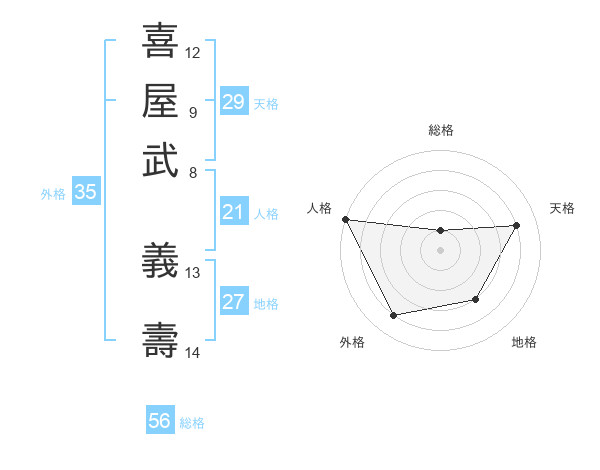喜屋武 義壽さんを姓名の画数から五運を鑑定