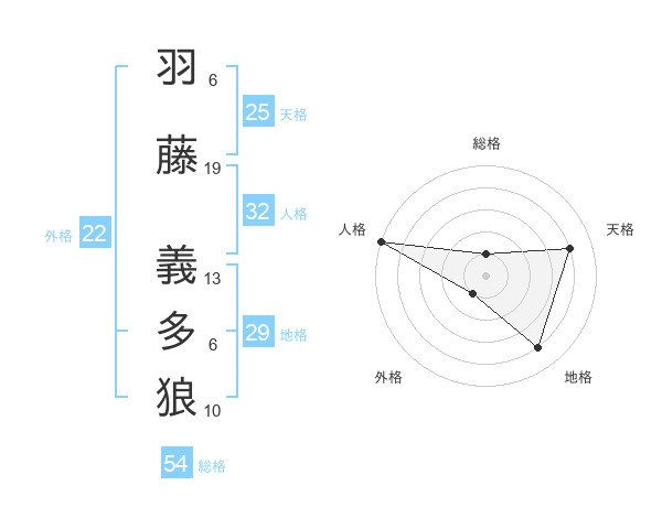 羽藤 義多狼さんの総格は54画の1点!
