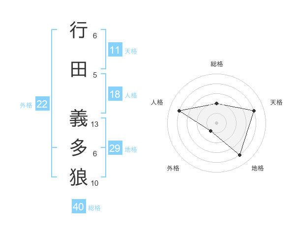 行田 義多狼さんを姓名の画数から五運を鑑定