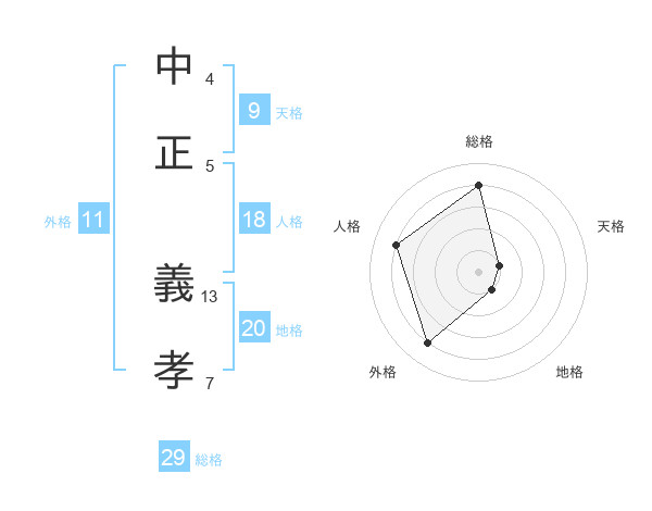 中正 義孝さんの総格は29画の4点!