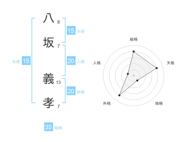 八坂 義孝さんの総格は35画の4点!