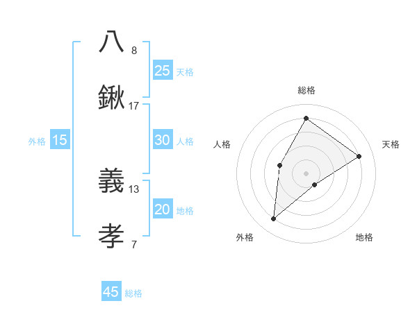 八鍬 義孝さんの総格は45画の4点!
