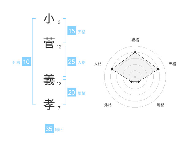 小菅 義孝さんの総格は35画の4点!