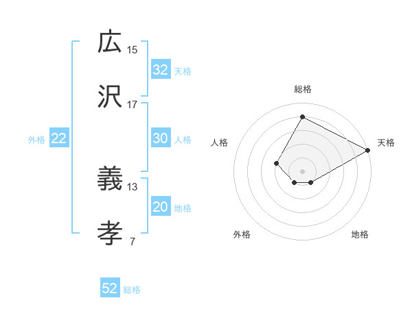 広沢 義孝さんの総格は52画の4点!