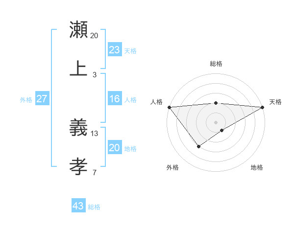 瀬上 義孝さんを姓名の画数から五運を鑑定
