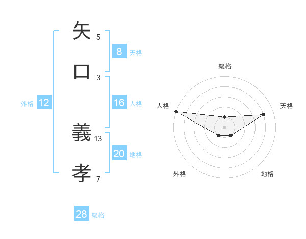 矢口 義孝さんを姓名の画数から五運を鑑定