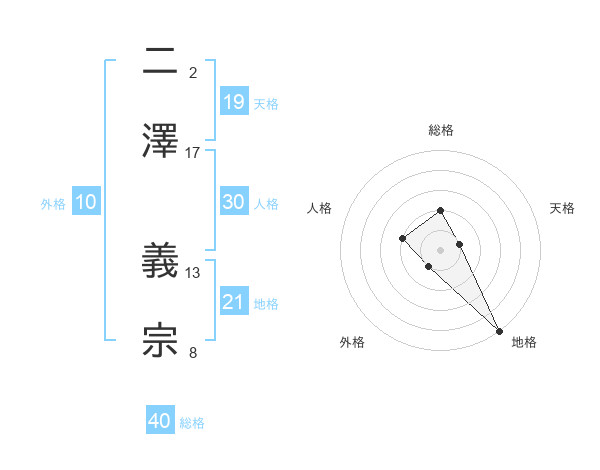 二澤 義宗さんを姓名の画数から五運を鑑定