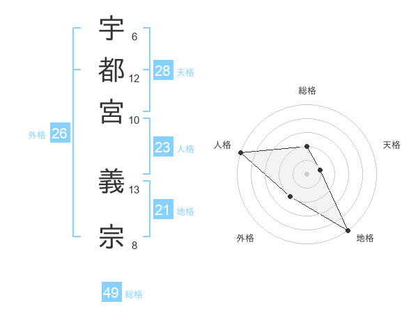 宇都宮 義宗さんの総格は49画の2点!