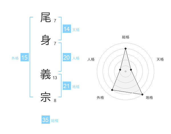 尾身 義宗さんの総格は35画の4点!