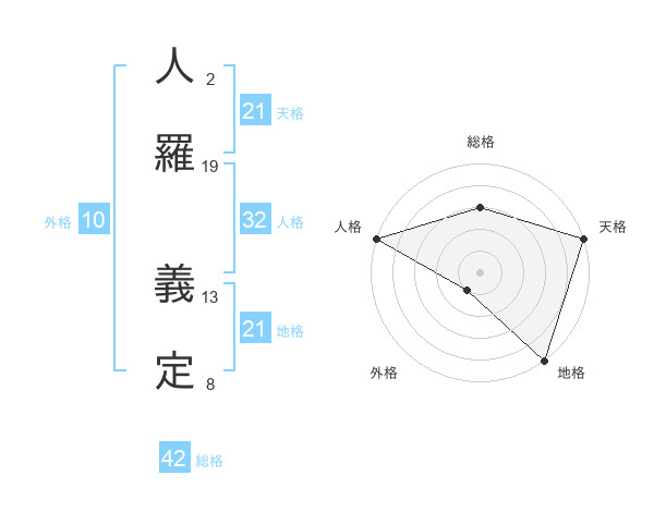 人羅 義定さんの天格は21画の5点!