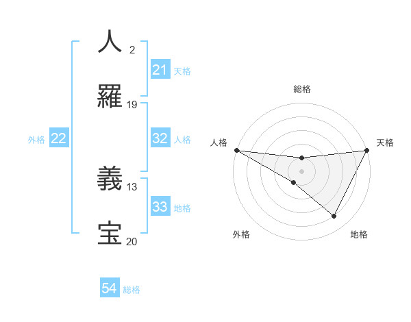 人羅 義宝さんの外格は22画の1点!