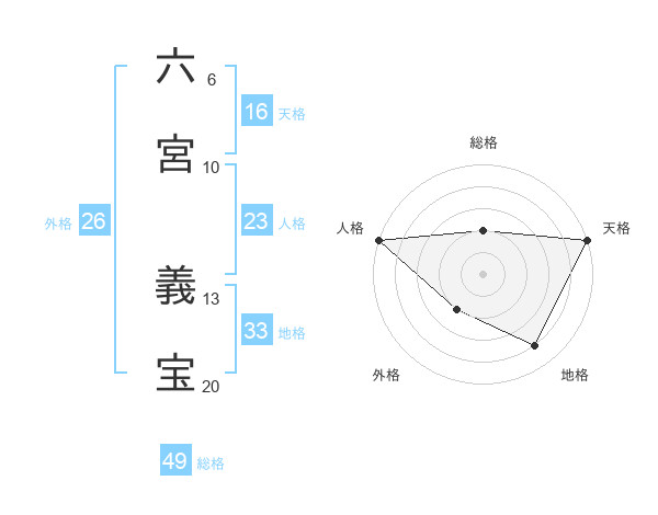 六宮 義宝さんを姓名の画数から五運を鑑定