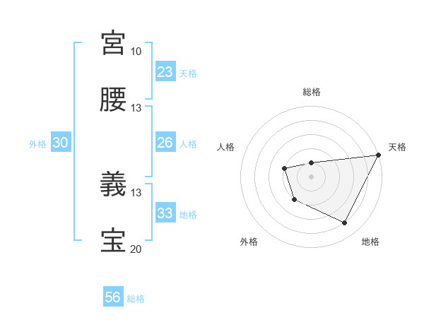 宮腰 義宝さんを姓名の画数から五運を鑑定