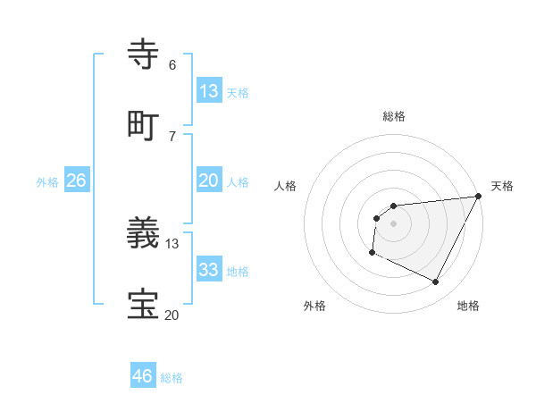 寺町 義宝さんを姓名の画数から五運を鑑定