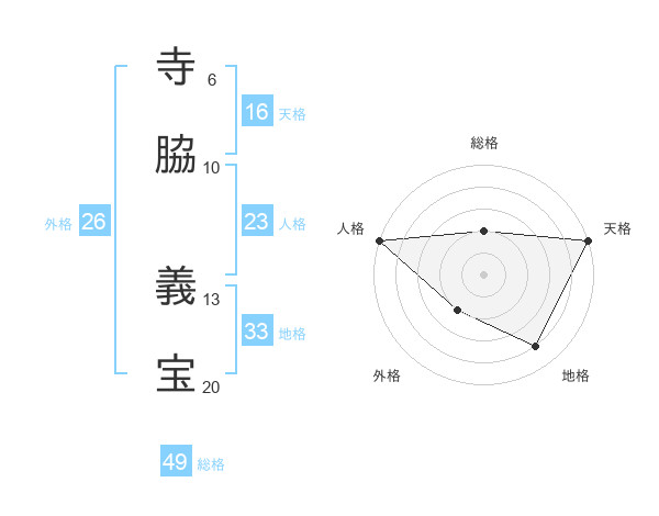 寺脇 義宝さんの総格は49画の2点!