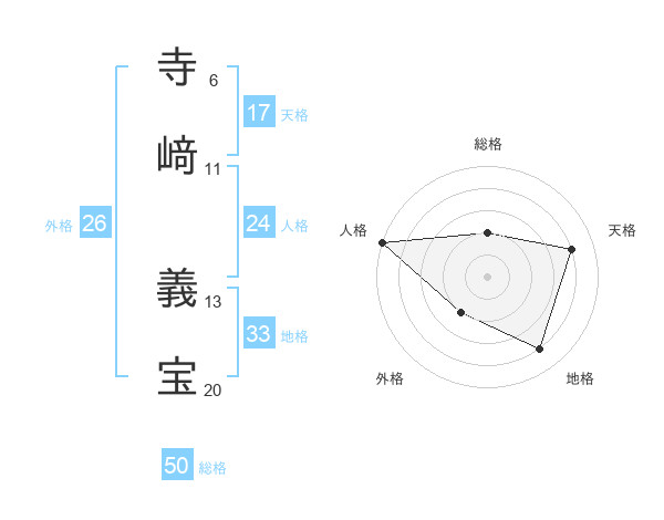 寺﨑 義宝さんの総格は50画の2点!