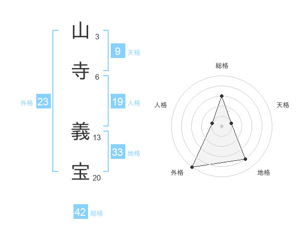 山寺 義宝さんを姓名の画数から五運を鑑定