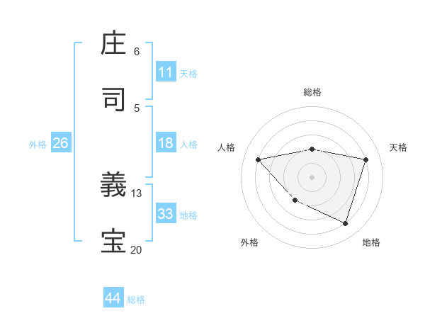 庄司 義宝さんの総格は44画の2点!
