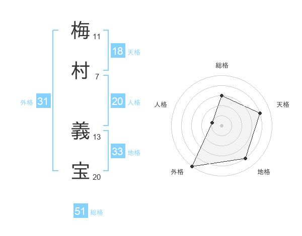 梅村 義宝さんの総格は51画の3点!