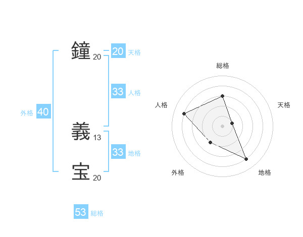 鐘 義宝さんを姓名の画数から五運を鑑定