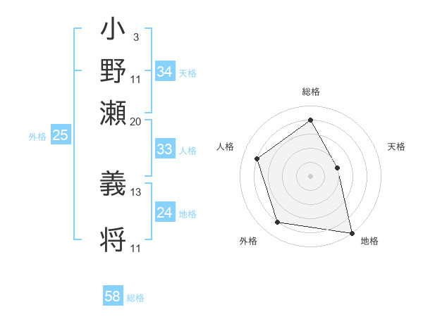 小野瀬 義将さんを姓名の画数から五運を鑑定