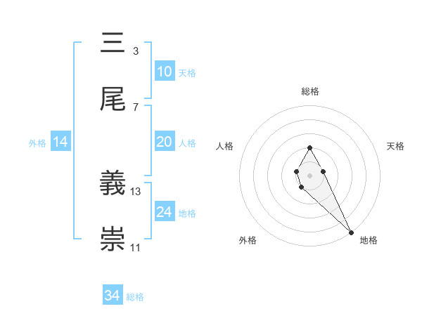 三尾 義崇さんの総格は34画の2点!