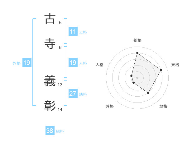古寺 義彰さんの総格は38画の4点!