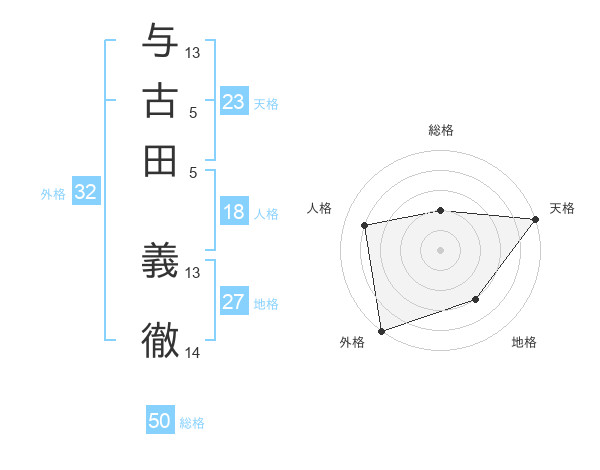 与古田 義徹さんを姓名の画数から五運を鑑定