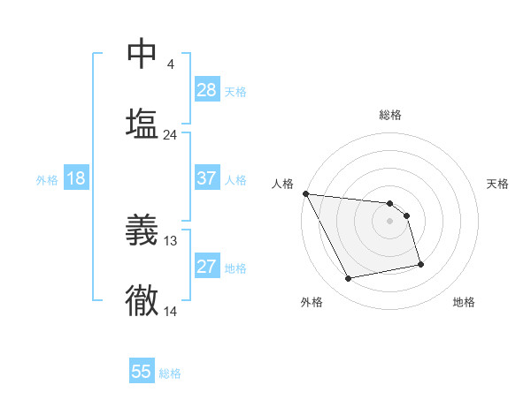中塩 義徹さんを姓名の画数から五運を鑑定