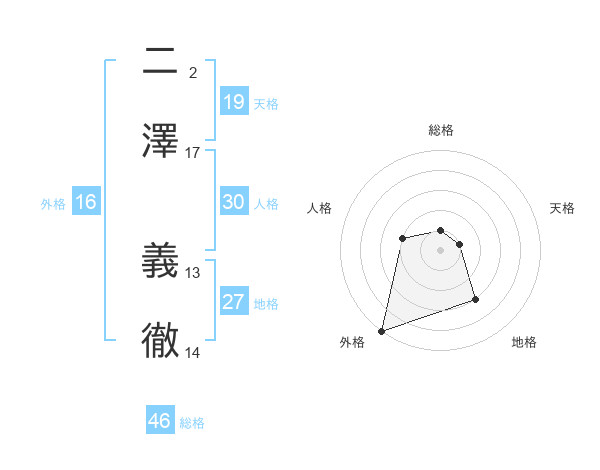 二澤 義徹さんを姓名の画数から五運を鑑定