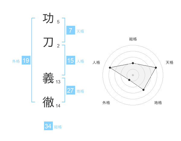 功刀 義徹さんを姓名の画数から五運を鑑定