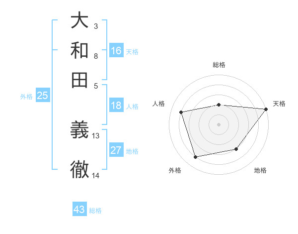 大和田 義徹さんの天格は16画の5点!