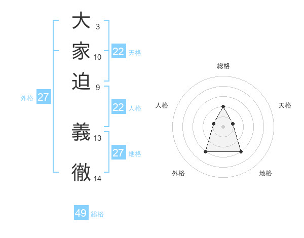 大家迫 義徹さんを姓名の画数から五運を鑑定