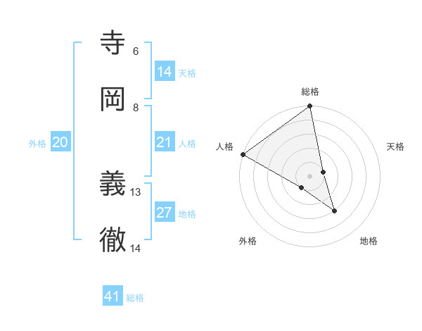 寺岡 義徹さんの総格は41画の5点!