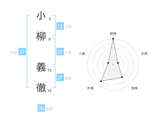 小柳 義徹さんの総格は39画の5点!
