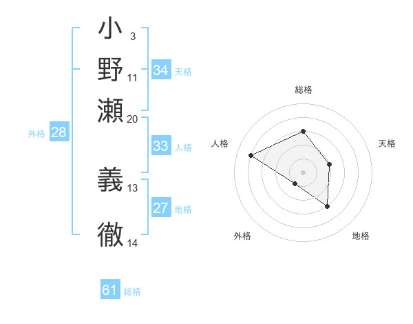 小野瀬 義徹さんを姓名の画数から五運を鑑定