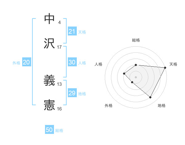 中沢 義憲さんの総格は50画の2点!