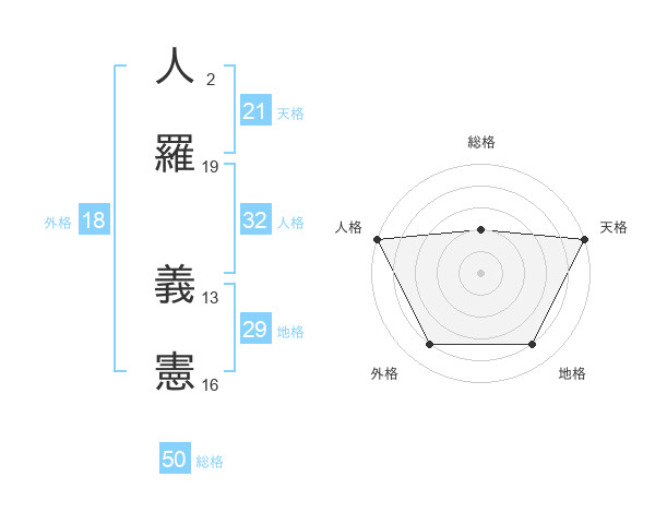 人羅 義憲さんの天格は21画の5点!