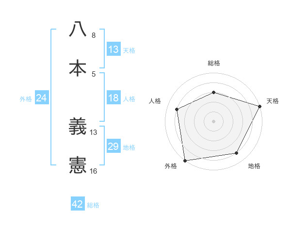 八本 義憲さんの天格は13画の5点!