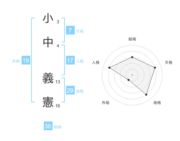 小中 義憲さんの総格は36画の3点!