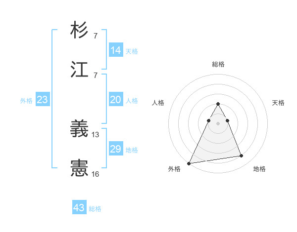 杉江 義憲さんを姓名の画数から五運を鑑定