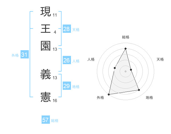 現王園 義憲さんを姓名の画数から五運を鑑定