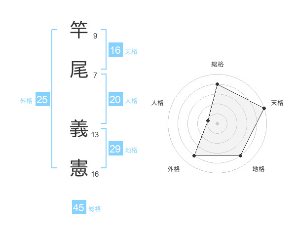 竿尾 義憲さんを姓名の画数から五運を鑑定