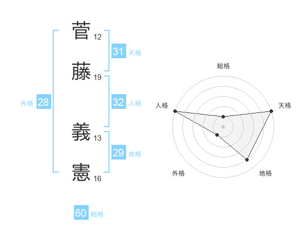 菅藤 義憲さんを姓名の画数から五運を鑑定