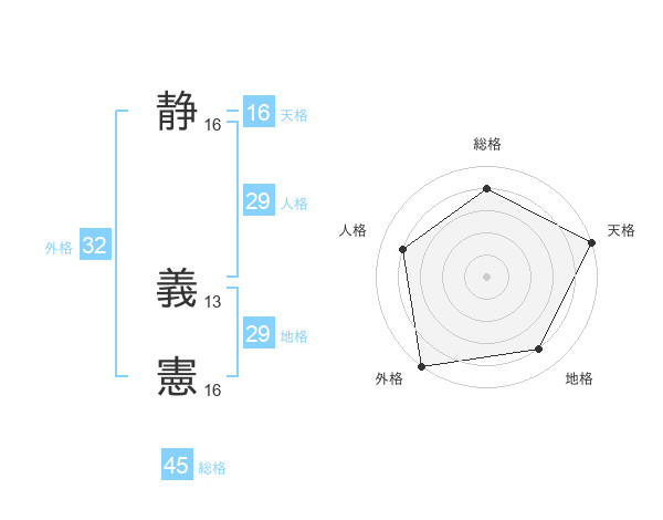 静 義憲さんの総格は45画の4点!
